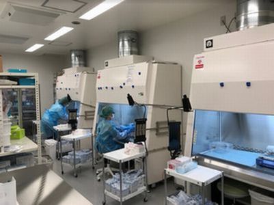 診察後に処方箋が発行され、薬局で薬の量を調整し、注射、点滴薬として混ぜ合わせます。患者さんの体調や検査結果によって治療内容が変更されることもあり、時間がかかる場合があります。抗がん剤の準備は安全性を確保するために慎重な確認作業が必要であり、処方箋が発行されてから少なくとも1時間を要します。