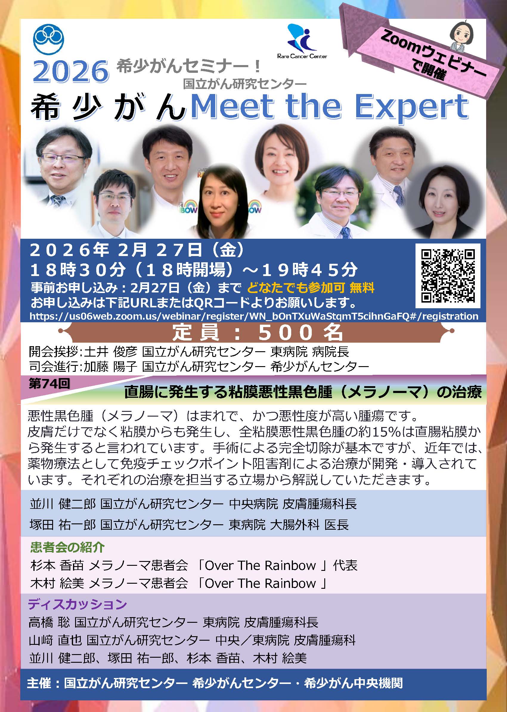 「オンライン 希少がん Meet the Expert」 第74回 直腸に発生する粘膜悪性黒色腫(メラノーマ)の治療