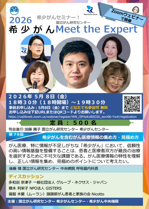 「オンライン 希少がん Meet the Expert」 第79回 希少がんを含むがん医療情報の集め方・見極め方